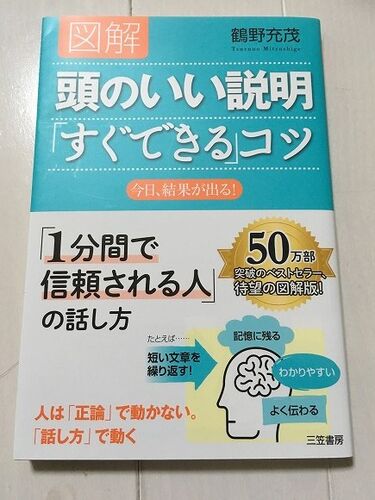 この「図解 頭のいい説明『すぐできる』コツ」は、私の後輩がいつも上司から「結局何が言いたいのかよくわからない」と言われているのを見ていて、一昨年(2016年)におススメした本です。表紙にもあるように、「1分間で信頼される人」の話し方・説明の方法…